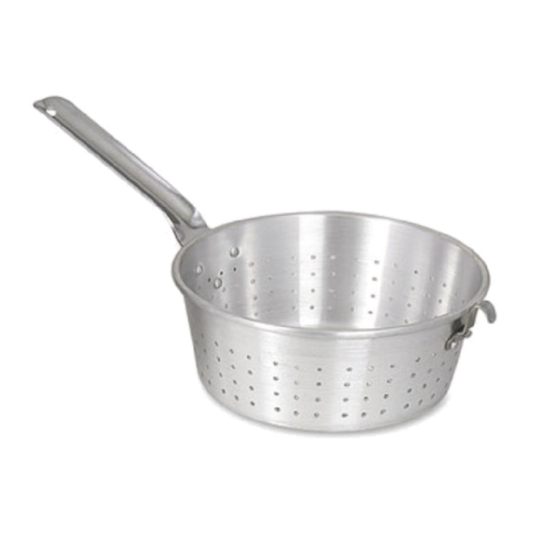 Alegacy Foodservice Products, HA23, Strainer, 9" dia. x 3-1/2" deep, round, grooved riveted handle, dent-resistant, pan hook, aluminum (Packed By: 6 Each Per Case)