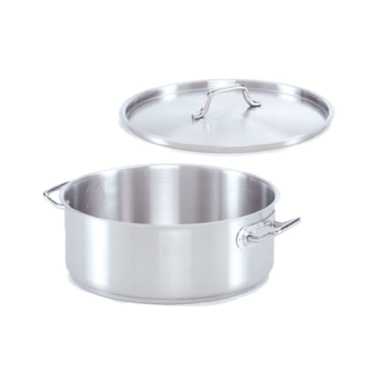Alegacy Foodservice Products, SSBR25, Optima® Brazier, 25 qt., 17-3/4" dia. x 5-7/8" deep interior, round, with cover, welded handles, corrosion resistant, 18/8 stainless steel, satin finish, NSF (Packed By: 1 Each)