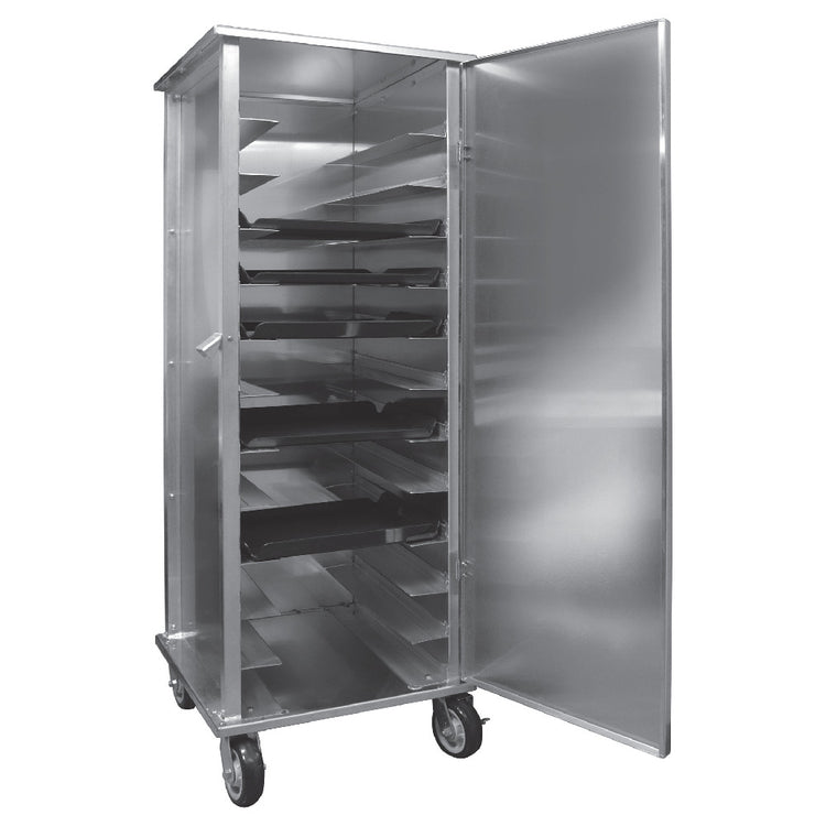 Alexander Industries, A-TR600, Transport Cabinet, Mobile, 70"H x enclosed, pan supports spaced at 5" center, (24) 15" x 20" trays, extra heavy duty bolted & welded hinges, heli-arc welded aluminum construction, 6" dia. heavy duty casters, shipped fully assembled, NSF