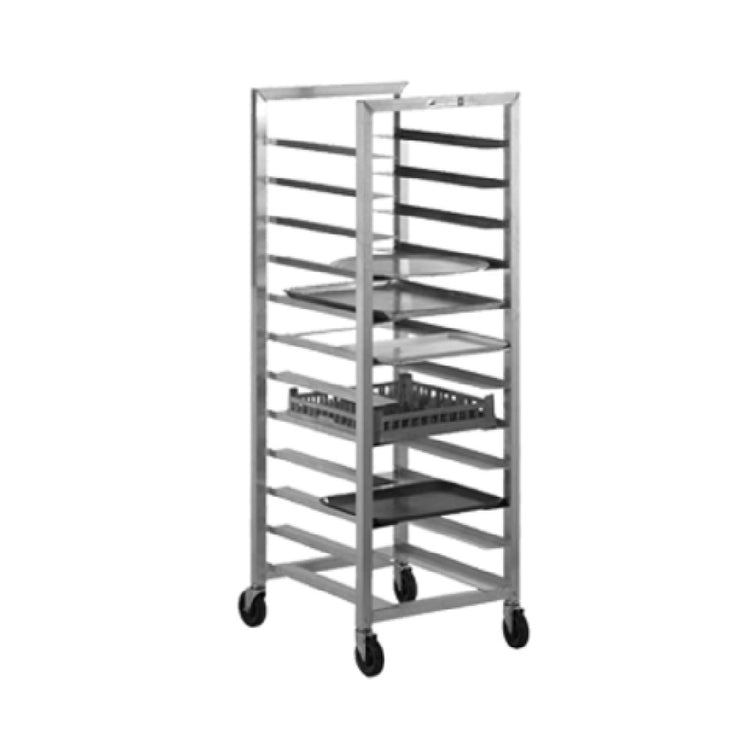 The Alexander Industries HDU-400 Universal Open Rack Mobile Heavy Duty is engineered to meet the rigorous demands of various culinary and industrial sectors, providing a reliable storage and transport solution. Standing at 73 inches in height, this open rack is constructed entirely from robust welded aluminum, ensuring durability and longevity. It features a versatile 5-inch slide spacing that accommodates a variety of kitchen essentials, including 18"x26" bun pans, 20"x24" trays, and pans measuring 12"x20"x2-1/2" or 4" deep, with a total capacity of 12 trays. Designed for end loading, the HDU-400 facilitates easy access and efficient workflow in fast-paced environments. Its mobility is enhanced by 5-inch diameter swivel casters, allowing smooth maneuvering across different surfaces. With an impressive weight capacity of 1200 pounds, this rack is capable of handling substantial loads, making it suitable for busy kitchens, catering services, and industrial applications. The product is shipped fully assembled and is NSF certified, highlighting its adherence to public health and safety standards. This universal open rack is an essential asset for any foodservice operation that prioritizes efficiency, durability, and versatility in equipment.