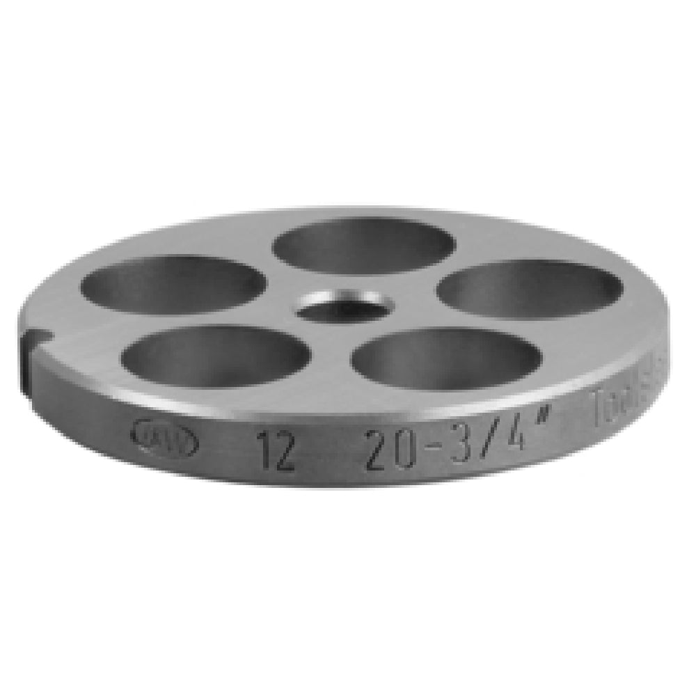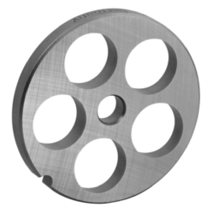 The Alfa 12 3/4 HBLS L & W Chopper Plate - hub size 12-3/4" hole size - is a high-performance component engineered for precision and durability, making it a vital asset in industrial food processing applications. Crafted from a robust chrome/vanadium alloy steel, this chopper plate is designed to withstand rigorous operational demands while maintaining its structural integrity. The plate is meticulously manufactured to include the maximum number of holes, optimizing its efficiency and performance in diverse processing environments. Proudly made in Germany, the Alfa 12 3/4 HBLS chopper plate serves as a reliable replacement for the OEM 12 3/4 HBLS model, ensuring compatibility and seamless integration into existing systems. Its precise engineering and durable construction make it suitable for various market segments, including large-scale meat processing plants and specialized gourmet kitchens, where consistency and quality are paramount. The Alfa 12 3/4 HBLS L & W Chopper Plate underscores the commitment to quality and precision, providing an indispensable tool for professionals seeking exceptional performance and longevity in their processing equipment.