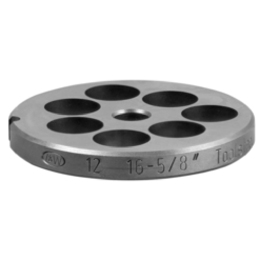 The Alfa 12 5/8 HBLS L & W Chopper Plate Hub Size 125/8" Hole Size is a precision-crafted tool designed to meet the demands of professionals in the food processing industry. Manufactured by Alfa International, this chopper plate is made from high-quality chrome/vanadium alloy steel, ensuring exceptional durability and performance. The hub size is 12, with a 5/8" hole size, allowing for efficient meat processing and customization to various grinding requirements. Engineered to replace OEM 103970-1, this chopper plate is an ideal solution for those seeking compatibility and reliability in their equipment. Proudly made in Germany, it embodies superior craftsmanship and precision engineering, making it a trusted choice for commercial kitchens and processing facilities. The plate's maximum number of drilled holes ensures optimal processing capacity, enhancing productivity and efficiency. With its robust construction and precise specifications, the Alfa 12 5/8 HBLS L & W Chopper Plate is suited for diverse market segments, from small butcher shops to large-scale food production facilities, offering a reliable and efficient solution for meat grinding and processing tasks.