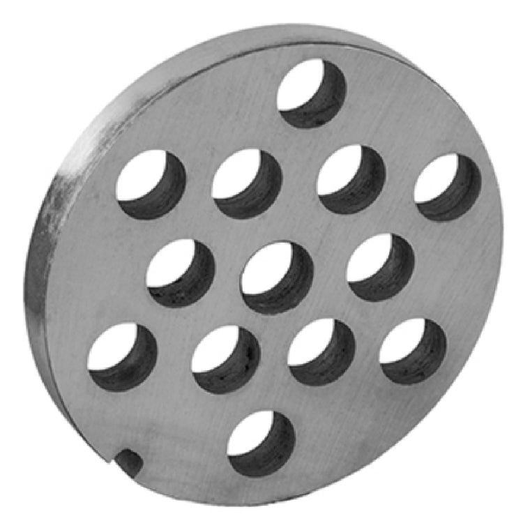 The Alfa 22 HFG 1/2 HBLS Chopper Plate With 22 Hubless Plate 1/2" Hole Size is an essential component for those utilizing a hand food grinder, specifically the 22 HFG model. This chopper plate features a hubless design, optimizing it for seamless integration and functionality within your grinder setup. The 1/2" hole size is specifically engineered to deliver consistent and uniform chopping results, catering to various food processing needs. It is a direct replacement for the OEM 822 GP 1/2, ensuring compatibility and performance consistency for existing grinder systems. This product is particularly valuable for commercial kitchens and food processing businesses that require efficient and reliable chopping capabilities within their operations. By maintaining detailed specifications and consistent output quality, the Alfa 22 HFG 1/2 HBLS Chopper Plate serves as a reliable solution for achieving desired texture in processed foods. The integration of this plate contributes to the efficiency and versatility of the hand food grinder, making it an indispensable tool for food industry professionals looking to maintain high standards of processing and preparation.