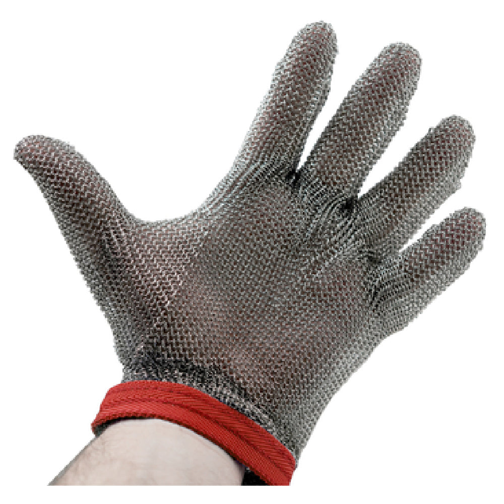 The Alfa 515 M Protective Mesh Glove Medium Ambidextrous is a high-performance safety accessory designed to cater to various industrial needs, ensuring superior hand protection through its carefully engineered features. Constructed with welded stainless steel rings, this glove promises exceptional durability and resistance against cuts, making it an ideal choice for industries where sharp tools and equipment are prevalent. The medium size provides a comfortable fit for a wide range of users, while its ambidextrous design ensures versatility, accommodating both left and right-handed individuals. The glove is equipped with an adjustable red wristband snap fastener, offering a secure fit that enhances safety during use. Certified by the USDA, it underscores its compliance with stringent safety standards, emphasizing its suitability for food processing environments. Proudly manufactured in the USA, the Alfa 515 M glove replaces the OEM M5011-M, signifying a reliable and trusted upgrade for users familiar with its predecessor. This protective mesh glove stands out in its category by providing a unique combination of strength, flexibility, and compliance, making it an invaluable asset for professionals in industries ranging from food processing to metalworking, where safeguarding hands against potential hazards is paramount.