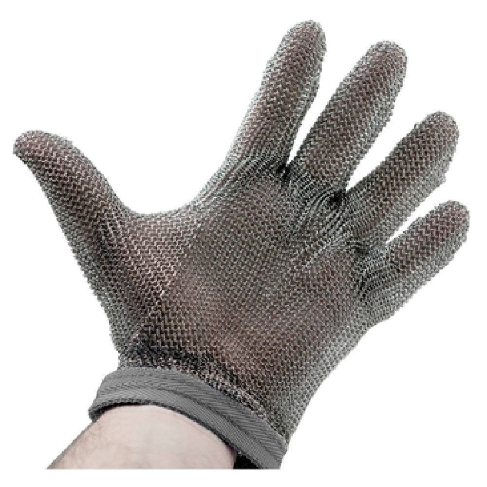 The Alfa 515 XS Protective Mesh Glove X-small Ambidextrous is a finely crafted safety accessory designed for precision tasks and industries where hand protection is paramount. Constructed with welded stainless steel rings, this glove provides a robust barrier against cuts and abrasions, ensuring superior safety in environments such as meat processing, culinary operations, and metalworking. The ambidextrous design allows for versatile use on either hand, enhancing its utility across various applications. The adjustable grey wristband snap fastener ensures a secure fit, minimizing the risk of slippage during intricate tasks, and catering to users who require a snug and reliable glove fit. This glove carries the approval of the USDA, highlighting its compliance with stringent safety and hygiene standards, making it suitable for use in food processing industries. Proudly made in the USA, the Alfa 515 XS Protective Mesh Glove serves as a direct replacement for the OEM A515XS D model, ensuring continuity and compatibility for existing users. Its X-small size targets niche markets needing specialized sizing, providing a valuable solution for individuals seeking both comfort and protection in safety equipment. This glove is a testament to Alfa International's commitment to quality and innovation in personal protective equipment.