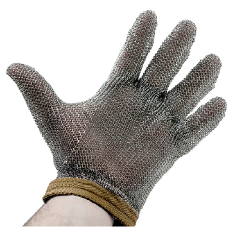 Alfa 515 XXL Protective Mesh Glove XX-large Ambidextrous is a premium safety accessory designed for diverse industrial applications, offering unparalleled protection and versatility. This glove is meticulously crafted using welded stainless steel rings, ensuring maximum durability and resistance to cuts or punctures, making it highly suitable for environments that demand rigorous safety standards. Its XX-large sizing accommodates a broader range of hand sizes while maintaining comfort and dexterity, crucial for tasks requiring precision. The ambidextrous design further enhances its usability, allowing for interchangeable use on either hand, thus increasing efficiency and convenience in fast-paced settings. Featuring an adjustable brown wristband with a snap fastener, the glove guarantees a secure fit, adaptable to various wrist sizes while providing ease of wear. Proudly manufactured in the USA, this glove meets USDA standards, reinforcing its quality and reliability for professional use. As a replacement for the OEM M5011-XXL model, it seamlessly integrates into existing safety protocols, offering a trusted solution for industries such as food processing, meatpacking, and metalwork that demand high levels of hand protection. The Alfa 515 XXL is an indispensable tool for professionals seeking robust safety measures without compromising on comfort or flexibility.