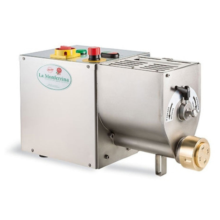 The Alfa DOLLY Pasta Extruder Countertop is a compact yet powerful machine designed to produce up to 3 lbs. of pasta per batch, with a total output of 13 lbs. per hour, making it an invaluable asset for high-demand kitchens and artisanal pasta producers. Constructed with durable stainless steel, this pasta extruder boasts an adjustable automatic cutting motor, enhancing efficiency and precision in pasta production. It includes single and double blade cutting knives, providing versatility in pasta shape and size, tailored to diverse culinary applications. The Alfa DOLLY comes with four pasta dies of your choice, allowing for customization in pasta styles, though certain exclusions may apply. Operating at 110 volts, this machine replaces the OEM III, reflecting its advanced design and functionality for modern food service environments. Its countertop design is ideal for establishments with limited space, while its robust construction ensures long-lasting performance. The Alfa DOLLY Pasta Extruder Countertop is particularly suited for small to medium-sized restaurants, catering businesses, and gourmet pasta shops, delivering consistent quality and efficiency. Its integration of advanced features and user-friendly operation positions it as a critical tool for culinary professionals seeking to elevate their pasta production capabilities.