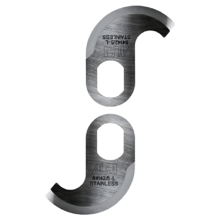The Alfa HOB 84142/5 Closed End Knives for Hobart Food Cutters 8142, 8145, 84142, 84145 (14" Bowl) stand out as a precision-engineered solution for professional kitchens. Crafted from high-quality stainless steel, this set of two knives is designed to replace OEM parts P-71309 and P-71310, ensuring compatibility and enhanced performance for Hobart food cutters. The closed-end design of these knives offers improved durability and cutting precision, ideal for chefs who demand consistent results. These knives are meticulously tailored to fit a 14-inch bowl, catering to various food preparation tasks with ease. Their robust construction enhances longevity, making them a cost-effective choice for commercial kitchens looking to maintain high operational standards. The Alfa HOB 84142/5 knives serve as an essential tool for food processing, optimizing the cutter's efficiency and delivering superior cutting capabilities. With their compatibility across multiple models, these knives present a valuable addition to foodservice operations that rely on Hobart equipment, providing reliability and performance in one seamless package. As a replacement set, they ensure that Hobart food cutters continue to function at peak efficiency, supporting the diverse needs of the culinary industry with precision and reliability.