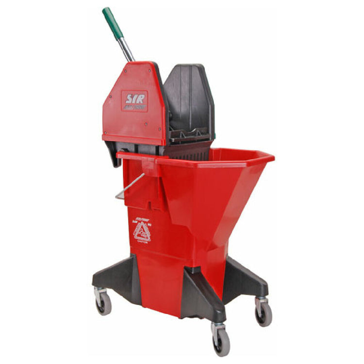 AllPoints 1591100 Color Red, Green Wringer, Material Plastic, Height 19 1/2", 493 Mm, Wheel Diameter 3", 76 Mm, Capacity 25 L, 26 Qt, Includes (4) Casters And Universal Caution Sign, Caster Type Swivel