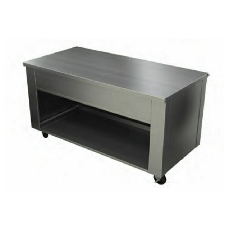 The Alluserv AST3 Evolution Series Solid Top Counter is a versatile mobile unit measuring 52"W x 32-1/2"D x 36"H, designed to efficiently meet the dynamic needs of various industry segments. This counter features an enclosed base that includes a 38"W storage area, providing ample space for organized storage. A highlight of its design is the adjustable stainless steel mid-shelf, allowing users to tailor the storage configuration to their specific requirements. The removable front panels enhance accessibility and ease of cleaning, ensuring a hygienic environment. Constructed with high-quality stainless steel reinforced by galvanized steel channel supports, this counter guarantees durability and long-lasting performance. Equipped with 5" casters that include brakes on all wheels, the AST3 Evolution Series offers stability during use and ease of mobility when relocation is necessary. Notably, the product also includes features for Allergen Awareness, making it an ideal choice for food service operations prioritizing safety and inclusivity. This solid top counter is an exemplary solution for commercial kitchens, catering setups, and other food service environments that require robust, reliable, and customizable equipment.