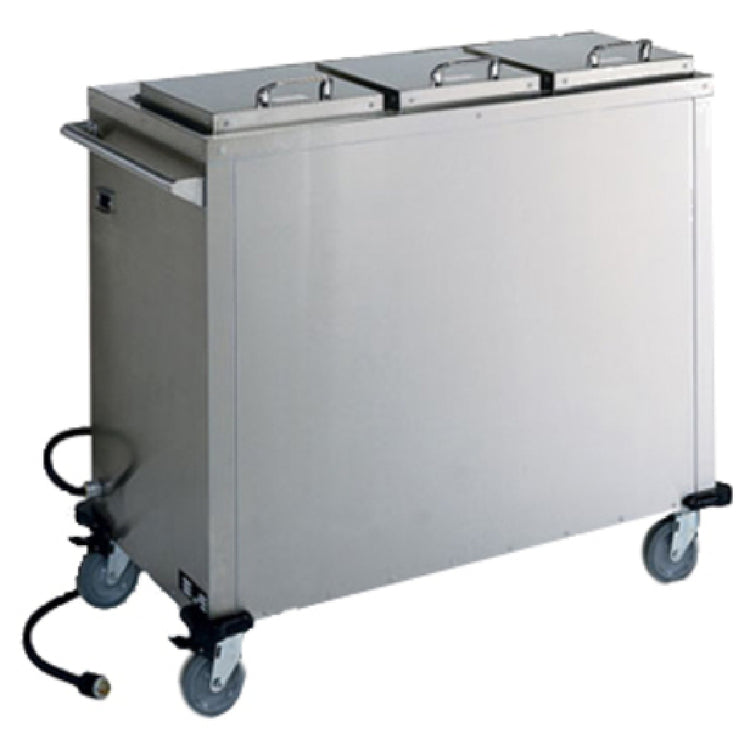 Alluserv CBH3 Heated Wax Base Dispenser - Mobile for 9" Wax Base System is a sophisticated solution designed specifically for efficient and convenient wax base dispensing. Featuring three self-leveling dispensers, this unit ensures consistent dispensing performance, which is crucial for operations requiring precision and reliability. The enclosed base of the Alluserv CBH3 is fully insulated, providing superior thermal retention, which is essential for maintaining the ideal wax dispensing temperature. Constructed with an 18-gauge stainless steel exterior, this dispenser offers robust durability and resistance to wear and tear, while the high-strength aluminum interior enhances its structural integrity. Equipped with four 5" casters, including two with brakes, this mobile unit ensures ease of movement and secure placement. Its corner bumpers add an extra layer of protection against impacts during transit. The Alluserv CBH3 operates on 208/240v/60/1-ph, delivering 3200w of power at 16.3A, complete with a NEMA 6-20P cord and plug, ensuring compatibility with standard electrical setups. This product is designed to meet the demanding needs of various industry segments, offering a reliable and mobile solution for maintaining an efficient workflow in environments where wax base systems are essential.