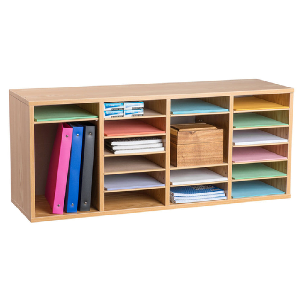 The Alpine Industries ADI500-24-MEO Paper Sorter-Literature File Organizer is a versatile and efficient solution designed to cater to various organizational needs across multiple industries. Featuring a substantial 24 compartment design, this organizer allows for finely tuned storage and sorting of documents, making it an indispensable tool for offices, educational institutions, and any professional setting where paperwork management is crucial. Constructed from sturdy wood with a visually appealing medium oak finish, this paper sorter not only adds a touch of elegance to any environment but also ensures durability and longevity. Its adjustable compartments offer flexibility, accommodating different sizes of documents and enabling users to customize the organizer to meet specific requirements. The Alpine Industries ADI500-24-MEO stands out in its category by combining aesthetic appeal with functional efficiency, making it a valuable addition for those looking to optimize their paper storage systems. The organizer's robust construction and adaptable design make it particularly suitable for high-traffic areas where reliable document sorting and accessibility are priorities, thus enhancing operational productivity and orderliness. Its medium oak finish adds a timeless look, ensuring the unit complements a wide range of interior designs. This paper sorter-literature file organizer embodies practicality and style for diverse market segments.