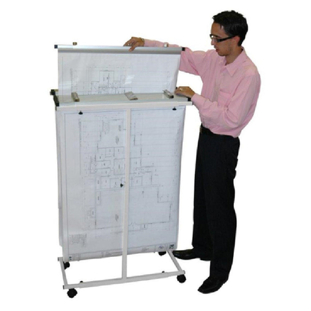 The Alpine Industries ADI614-WHI Vertical Plan Center for Blueprints is a mobile unit designed specifically for efficient blueprint storage and organization. It features a durable tubular construction that ensures stability and longevity, making it a reliable choice for architects, engineers, and construction professionals who require mobile storage solutions. The ADI614-WHI model is equipped with four casters, providing seamless mobility to transport blueprints between different locations or workstations effortlessly. Its white finish adds a clean and professional aesthetic that fits seamlessly into any office or work environment. With the ability to accommodate various sizes of blueprints, this vertical plan center is particularly beneficial for industries that handle large-scale designs and need an organized system to prevent creasing or damage to valuable documents. The Alpine Industries ADI614-WHI is engineered for practicality, offering a versatile and adaptable solution to blueprint storage that caters to the specific needs of professionals within the architectural and engineering sectors. By combining mobility with robust construction, this vertical plan center effectively enhances the workflow and organization of any project that relies on detailed plans and blueprints.