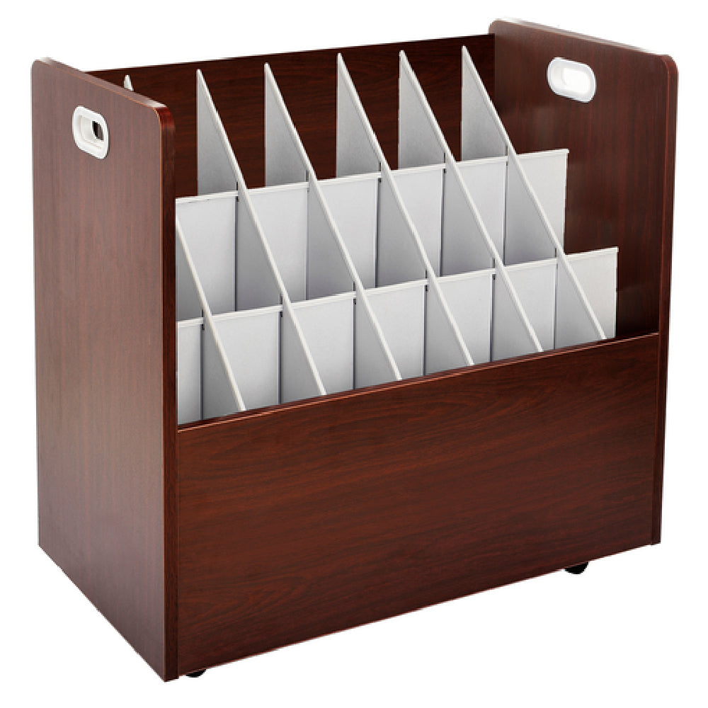The Alpine Industries ADI625-MA Blueprint Roll File/Large Document Organizer Mobile is a dynamic storage solution tailored for the efficient organization of oversized documents. Crafted with precision, this mobile unit features 21 slots, providing ample space for storing blueprints, architectural plans, and large-format documents with ease. Constructed from durable wood, it boasts a sophisticated mahogany finish, adding a touch of elegance to any professional environment. The mobile design of the ADI625-MA ensures flexibility and convenience, allowing it to be effortlessly repositioned within an office, studio, or workspace. This blueprint roll file is an ideal choice for architects, engineers, and designers who require a reliable and stylish organizer for their large documents. Its sturdy construction and classic appearance make it suitable for both contemporary and traditional office settings. The ADI625-MA offers a practical and aesthetically pleasing solution to streamline document storage and retrieval, enhancing productivity and workflow efficiency in industries where large document management is crucial.