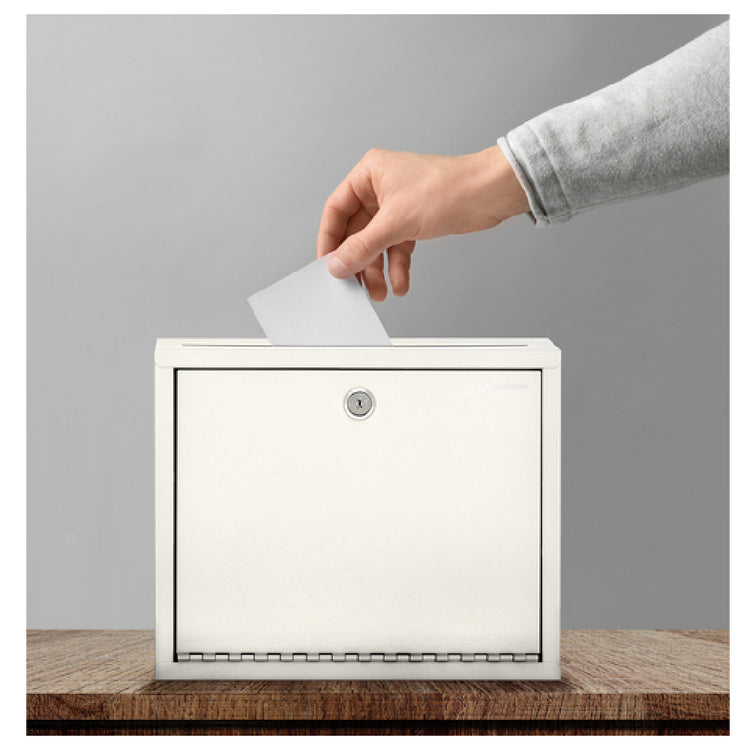 The Alpine Industries ADI631-03-WHI Suggestion Box 12" X 3" X 10"H Wall Mountable is a meticulously designed accessory, ideal for collecting feedback in a range of professional environments. This compact unit, with dimensions of 12 inches in width, 3 inches in depth, and a height of 10 inches, is engineered to be easily installed on walls, saving valuable counter space. The suggestion box features a sturdy key and lock mechanism, ensuring the confidentiality and security of submissions. The sleek white finish not only adds a clean, professional look but also complements various interior décors in offices, schools, or retail environments. Its practicality and functionality make it a versatile solution for businesses and institutions keen on fostering communication and engagement with employees, clients, or customers. The box’s construction supports a wide array of industries by offering a reliable means to gather suggestions, feedback, or even anonymous reports. Alpine Industries' commitment to quality is evident in this product, providing a durable and efficient tool for enhancing client relations and operational feedback.