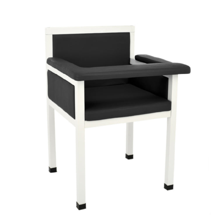 The Alpine Industries ADI997-02-BLK Blood Drawing Chair Padded Phlebotomy is specifically engineered to enhance comfort and efficiency in medical settings where blood drawing procedures are routinely conducted. This chair is designed with a durable steel frame, ensuring stability and longevity, which is essential in high-traffic healthcare environments. The padded seat and armrests, upholstered in high-quality polyurethane, provide a comfortable experience for patients, minimizing discomfort during phlebotomy procedures. The black polyurethane upholstery is not only aesthetically pleasing but also easy to clean, aiding in maintaining hygiene standards. The chair’s legs are capped to prevent floor damage, adding to its practicality in various clinical settings. Its sleek black design fits seamlessly into a range of medical interiors, from busy hospital labs to private clinics. The Alpine Industries ADI997-02-BLK Blood Drawing Chair Padded Phlebotomy is therefore a valuable asset for healthcare providers aiming to offer a comfortable and reliable phlebotomy experience, supporting both patient satisfaction and procedural efficiency. This product stands out in the healthcare industry due to its combination of durability, comfort, and practical design features tailored specifically for the demands of blood drawing environments.