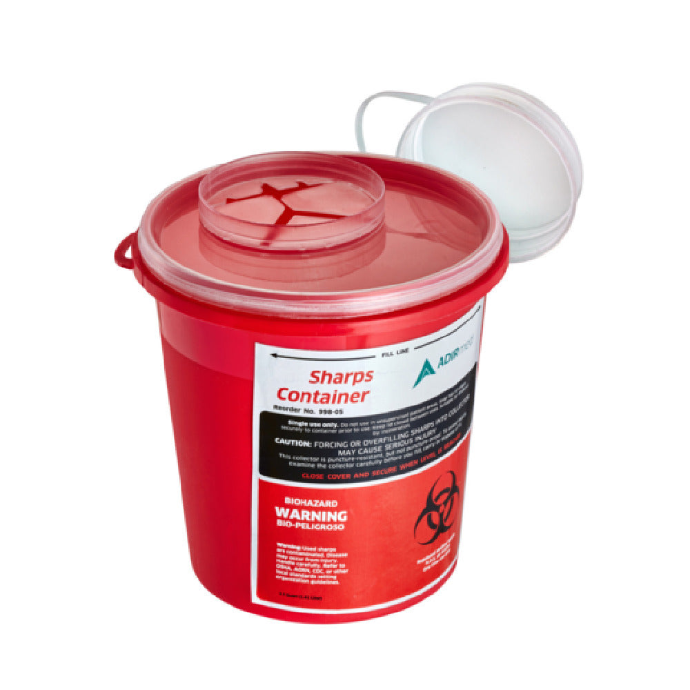 The Alpine Industries ADI998-05-01 Sharps Container 1-1/2 Qt. 5-1/2"W X 4-1/3"D X 5-9/10"H is a meticulously designed safety solution tailored for medical, laboratory, and clinical environments. This container boasts precise dimensions of 5-1/2 inches in width, 4-1/3 inches in depth, and 5-9/10 inches in height, providing a compact yet sufficient capacity of 1-1/2 quarts for the safe disposal of sharps waste. Its round shape and clear lid facilitate easy monitoring of fill levels, ensuring timely disposal to maintain safety standards. Crafted from puncture-resistant plastic, this container is engineered to prevent needlestick injuries, safeguarding healthcare professionals and patients alike. The durable construction supports reliable use in high-demand settings, while the transparent lid allows for quick visual assessments of its contents. The Alpine Industries ADI998-05-01 is an essential component for diverse segments within the healthcare industry, emphasizing both safety and convenience in sharps disposal. Its functional design and robust features make it an invaluable tool for maintaining hygiene and compliance in any environment where sharps are utilized. This sharps container is a critical asset for ensuring a safe and efficient waste management process.