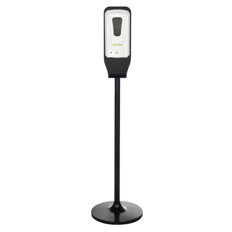 The Alpine Industries ALP430-F-S Soap & Hand Sanitizer Foam Dispenser is a versatile and efficient solution for public and commercial spaces requiring effective hygiene solutions. With its dimensions of 4-1/2"W x 6-1/10"D x 55-1/2"H overall, this automatic dispenser is designed to accommodate a substantial 40.6 oz (1200ml) capacity, making it suitable for high-traffic areas. The unit features a motion sensor, allowing for touchless operation that enhances hygiene and user convenience. A clear soap/sanitizer level indicating window offers easy monitoring of fluid levels, ensuring timely refills. The dispenser is equipped with a lock feature to prevent unauthorized access and tampering, enhancing security in public settings. Constructed from durable ABS material and presented in a sleek white finish, this dispenser is both robust and aesthetically pleasing. The inclusion of a floor stand provides stability and flexibility, allowing it to be positioned optimally for user access. Powered by batteries, this dispenser offers a flexible, cord-free setup, ideal for various environments from healthcare facilities to corporate offices, retail spaces, and educational institutions. The Alpine Industries ALP430-F-S is a reliable choice for maintaining cleanliness and sanitation in any professional setting.