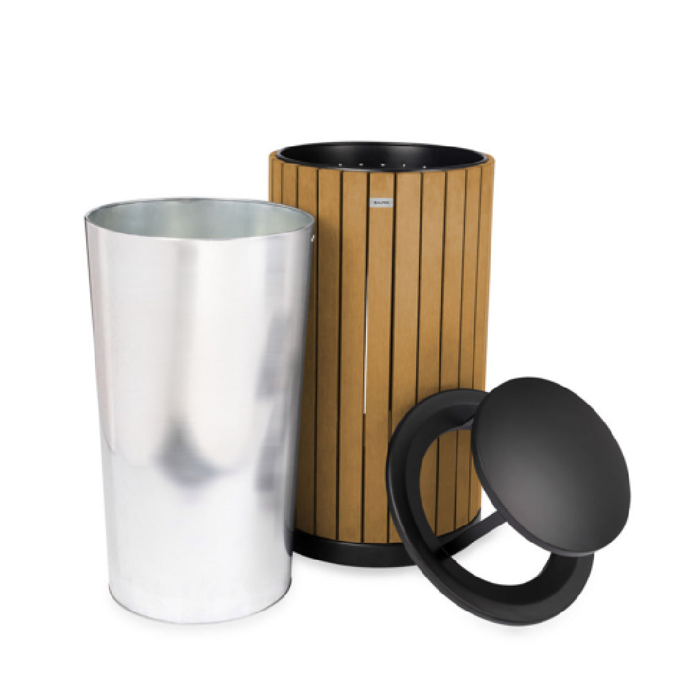 The Alpine Industries ALP4400-01-CD-RB Trash Container is a reliable outdoor waste management solution with a capacity of 32 gallons (121 liters). Measuring 20 inches in width, 20 inches in depth, and standing at 33-7/8 inches high, this round trash container is designed to fit seamlessly into various outdoor environments. Its slatted recycled plastic panels are not only eco-friendly but also provide a durable structure that withstands different weather conditions. The inclusion of a rain bonnet lid is a notable feature, ensuring that the contents remain dry and secure, even during adverse weather. Finished in cedar, this trash container offers a natural aesthetic appeal, making it a suitable choice for parks, recreational areas, and commercial outdoor spaces. The Alpine Industries ALP4400-01-CD-RB Trash Container represents a blend of functionality and sustainability, catering to the needs of environmentally-conscious consumers and businesses looking to enhance their waste management systems effectively.