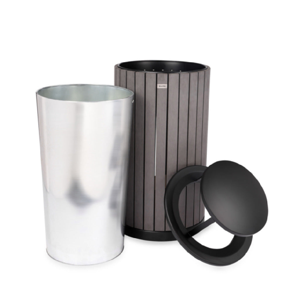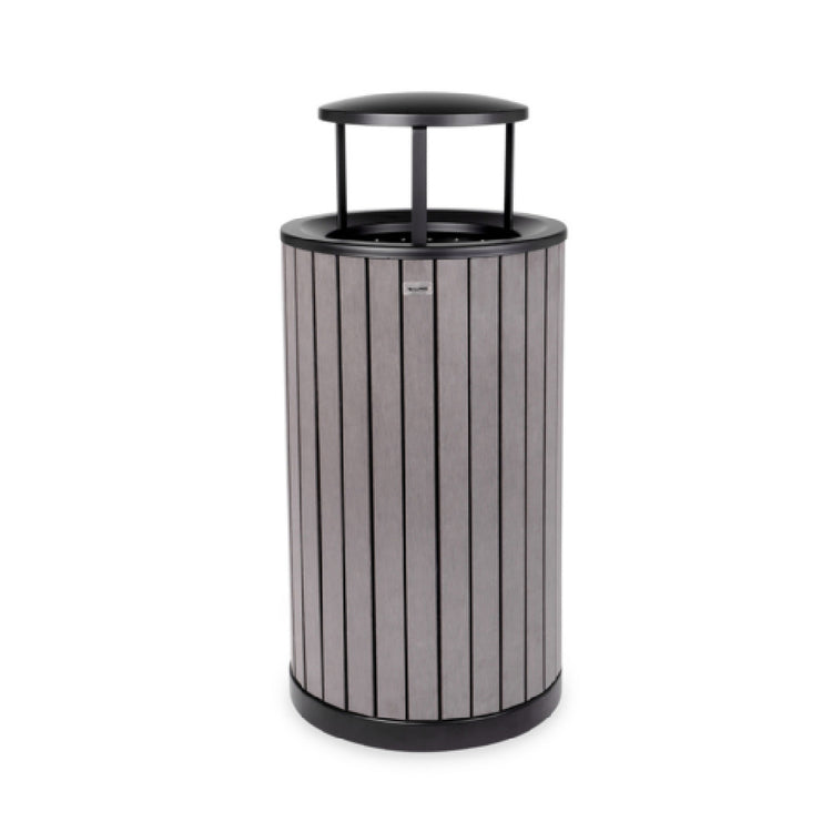 The Alpine Industries ALP4400-01-GRY-RB Trash Container is a robust solution for outdoor waste management, featuring a substantial capacity of 32 gallons (121 liters) to accommodate high-traffic areas efficiently. Its dimensions - 20 inches wide by 20 inches deep and standing 33-7/8 inches tall - make it compact yet spacious enough for various waste disposal needs. This trash container is designed with slatted recycled plastic panels, offering an eco-friendly choice for organizations committed to sustainability. The gray color provides a neutral aesthetic that complements diverse environments, from parks to commercial properties. Equipped with a rain bonnet lid, the ALP4400-01-GRY-RB ensures that contents remain dry even in adverse weather conditions, highlighting its suitability for outdoor use. This feature also minimizes maintenance requirements, providing long-term convenience and functionality. Its round shape enhances accessibility from all angles, making it user-friendly in busy public spaces. The Alpine Industries ALP4400-01-GRY-RB Trash Container is a practical, environmentally-conscious choice for industries seeking durability and sustainability in their waste management solutions.