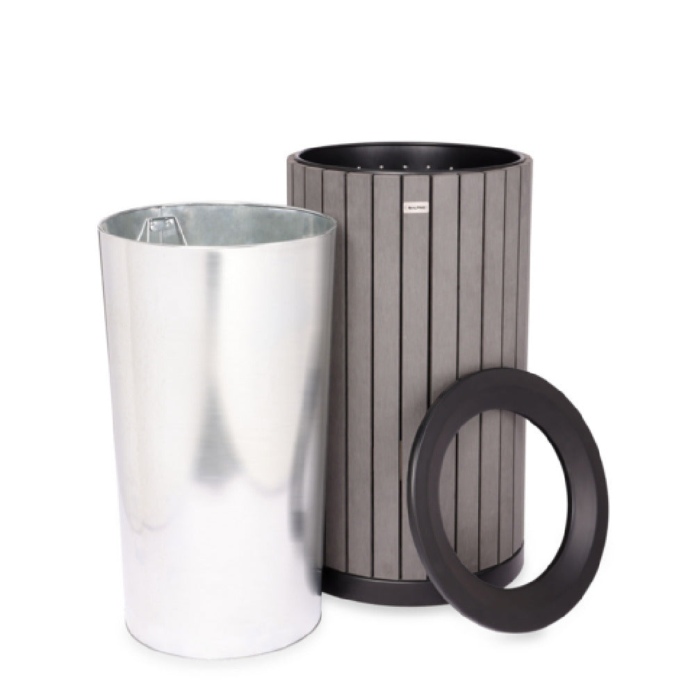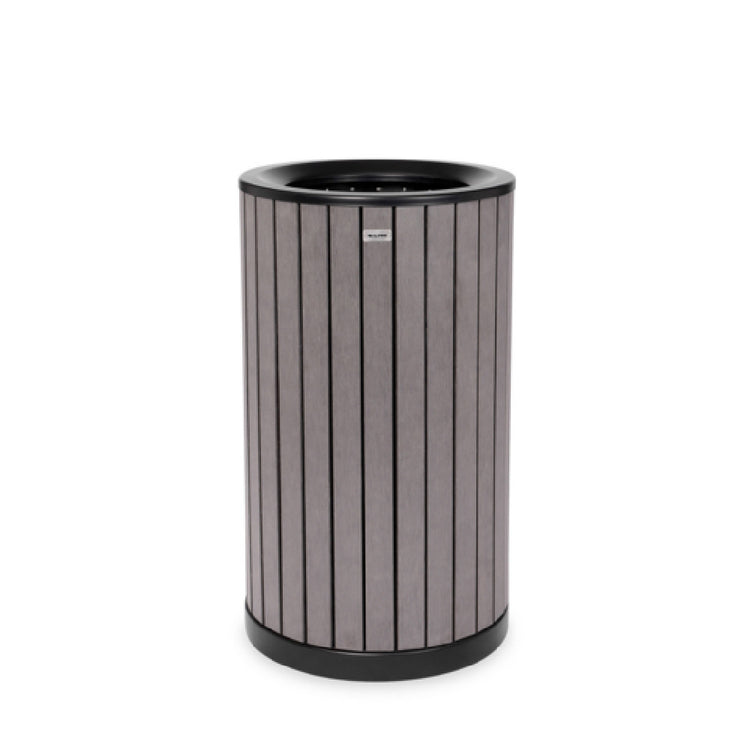 The Alpine Industries ALP4400-01-GRY Trash Container is an efficient waste management solution with a substantial capacity of 32 gallons (121 liters), making it suitable for various commercial and public settings. This round container is specifically designed for outdoor use, featuring durable slatted recycled plastic panels in a sleek gray finish, which not only enhances its aesthetic appeal but also contributes to environmental sustainability. Measuring 20 inches in width and depth, and standing at 33-7/8 inches high, the ALP4400-01-GRY is compact enough to fit into smaller spaces while still providing ample waste storage. Its robust construction ensures longevity and resistance to weather elements, making it a reliable choice for parks, recreational areas, and urban environments. The design of the Alpine Industries trash container effectively combines functionality with eco-friendly materials, offering a practical yet stylish waste disposal option for organizations looking to maintain clean and inviting outdoor spaces. This product is ideal for institutions that prioritize both durability and environmental responsibility in their facility management solutions.