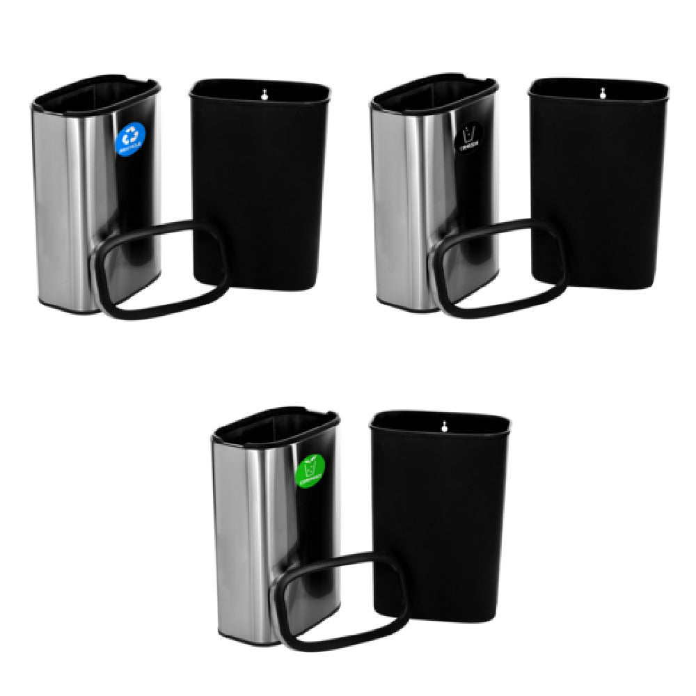 The Alpine Industries ALP470-40L-R-T-CO Recycle Trash Compost Station 10.5 Gallon (40 Liter) 17" x 10" x 25"H is a versatile waste management solution designed to streamline recycling, trash disposal, and composting needs. This station features three distinct streams, allowing users to efficiently sort waste into recycling, trash, and compost categories. With a capacity of 10.5 gallons (40 liters), it is suitable for various settings, including offices, schools, and public spaces. The open-top design facilitates easy waste disposal, while its slim profile ensures it fits comfortably in tight spaces. Crafted from durable stainless steel, this station is both robust and easy to maintain. Additionally, the unit adheres to ADA compliance, promoting accessibility for individuals with disabilities. Its dimensions of 17 inches in width, 10 inches in depth, and 25 inches in height make it a practical choice for environments where space is at a premium. The Alpine Industries ALP470-40L-R-T-CO is a sustainable and efficient option for organizations aiming to enhance their waste management systems while maintaining a tidy and organized environment. Its durable construction and thoughtful design make it an invaluable asset for those committed to environmental responsibility.