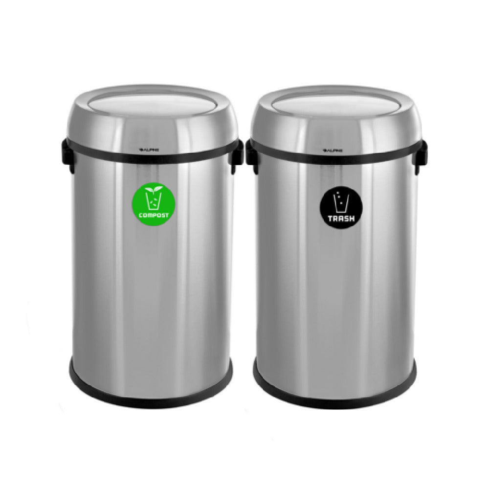 The Alpine Industries ALP470-65L-1-CO-T Compost And Trash Receptacle is a versatile solution designed for efficient waste management in various environments. With a capacity of 17 gallons (65 liters), this receptacle is well-suited for both commercial and residential applications. Measuring 16-1/2" in width, 15-7/10" in depth, and 27-1/10" in height, it offers a compact yet substantial option for waste segregation. The unit features two streams and a swivel lid, allowing for seamless disposal and separation of compostable materials and trash. Constructed from stainless steel with a brushed finish, it not only enhances durability but also adds a sleek, modern aesthetic to any space. Additionally, the receptacle is ADA compliant, ensuring accessibility and ease of use for all individuals. This product is particularly advantageous for businesses looking to implement sustainable waste management practices, as well as for households aiming to reduce their environmental footprint. Its robust design and functional features make it an indispensable asset in settings such as offices, restaurants, and public spaces, where maintaining cleanliness and promoting recycling are priorities.