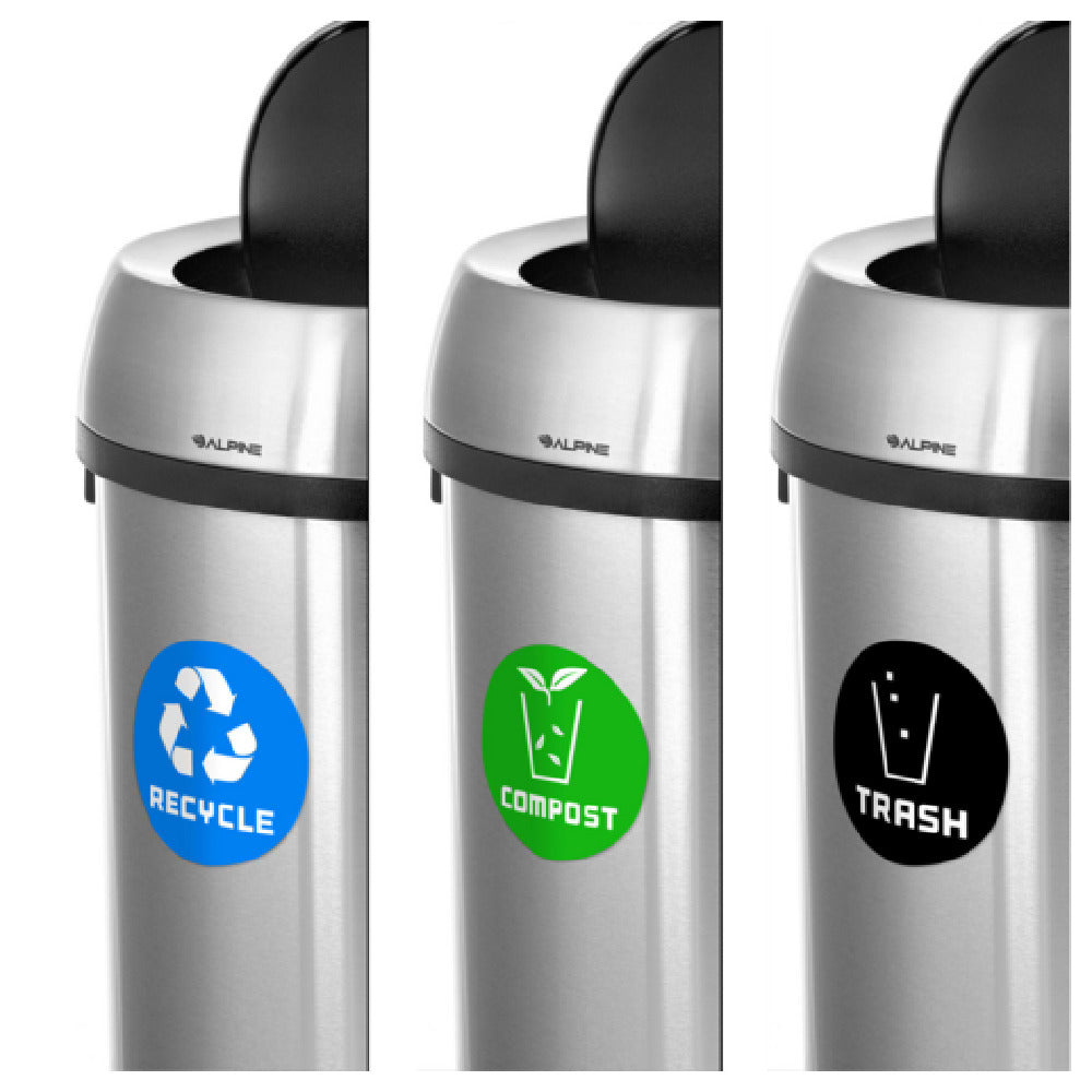 The Alpine Industries ALP470-65L-1-R-T-CO Recycling With Trash And Compost Bin 17 Gallon (65 Liter) Each is a versatile waste management solution featuring three distinct streams for recycling, trash, and compost. Each bin measures 16-1/2 inches in width, 15-70 inches in depth, and 27-1/10 inches in height, making it suitable for indoor use where space efficiency is crucial. Constructed with a stainless steel body and finished with a brushed texture, these bins provide both durability and a modern aesthetic. The incorporation of a swivel lid design enhances usability by facilitating easy waste disposal. Furthermore, this product is ADA compliant, ensuring accessibility for all users. The 17-gallon capacity for each bin stream is perfectly sized for various environments, including corporate offices, educational institutions, and public facilities, where efficient waste segregation is paramount. By integrating these bins into any indoor waste management system, users can effectively manage different types of waste while maintaining a clean and organized environment. The Alpine Industries ALP470-65L-1-R-T-CO Recycling With Trash And Compost Bin stands out as a comprehensive choice for those seeking to streamline their waste disposal processes with a focus on sustainability and accessibility.