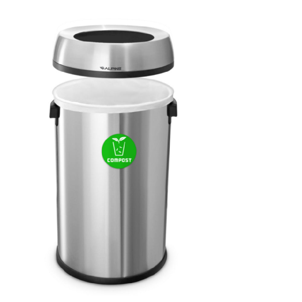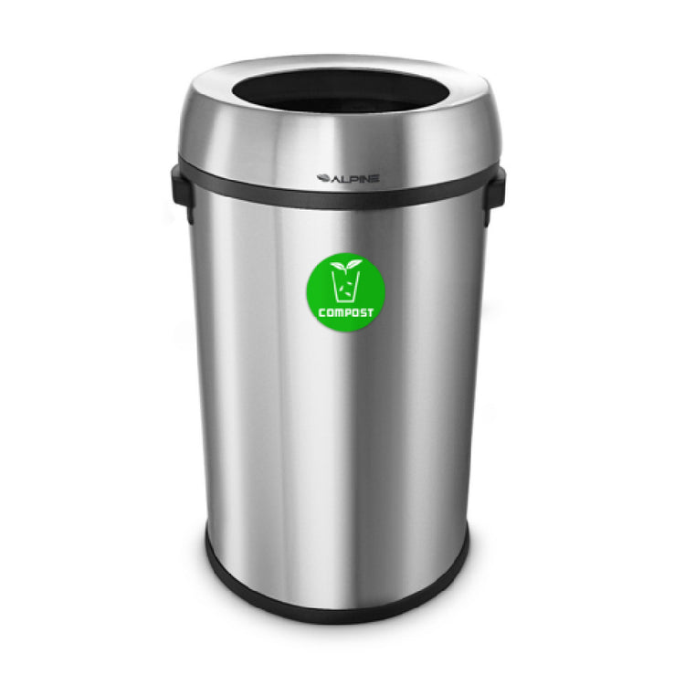 The Alpine Industries ALP470-65L-CO Compost Trash Can is a 17-gallon (65-liter) container, expertly designed to meet the diverse needs of various segments within the waste management industry. Its dimensions are meticulously crafted at 16-1/2" x 15-7/10 x 27-1/10", offering ample capacity for compostable waste, making it ideal for both residential and industrial applications. The open-top design allows for easy access and quick disposal without the hassle of lids or foot pedals, streamlining the waste management process in busy environments. This unit is constructed with high-quality stainless steel, featuring a brushed finish, which not only provides a sleek, modern look but also enhances durability and resistance to corrosion. The stainless steel construction is particularly valuable in settings that demand hygiene and longevity, such as commercial kitchens and public restrooms. Additionally, the ALP470-65L-CO is ADA compliant, ensuring accessibility for all users, which is a critical consideration for businesses aiming to meet regulatory standards and promote inclusivity. This compost trash can is a versatile and reliable solution for effectively managing organic waste, combining functionality with aesthetic appeal to cater to a broad range of professional and personal waste disposal needs.