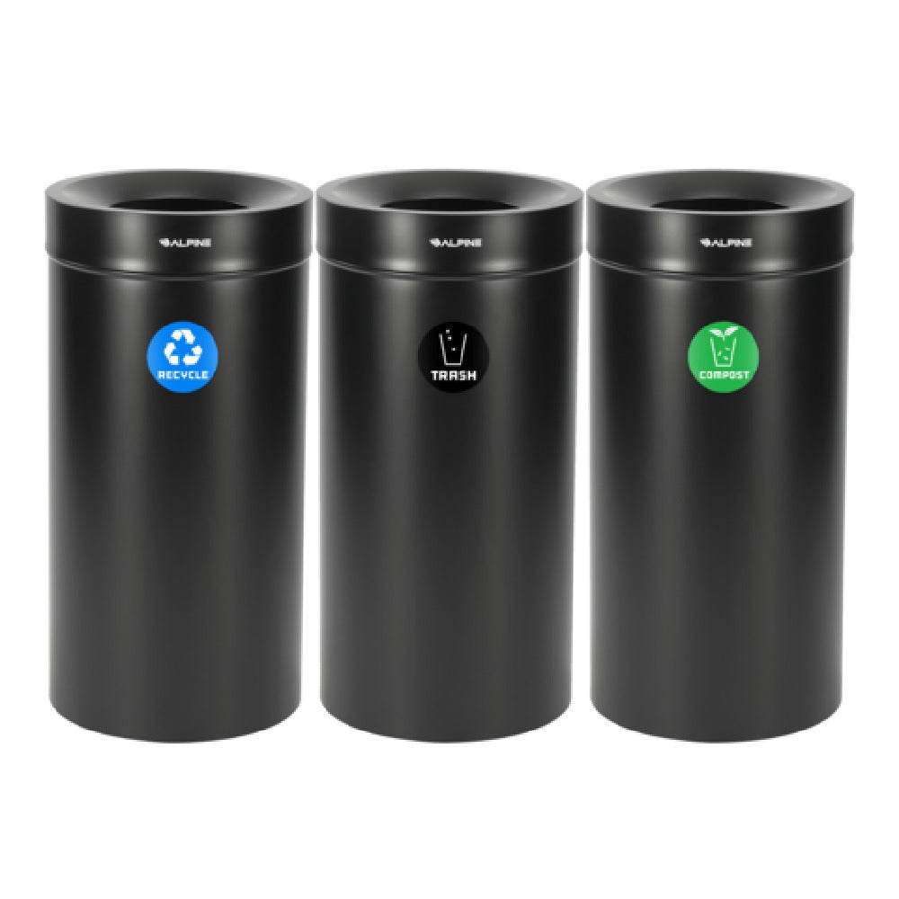 Alpine Industries ALP475-27-BLK-R-T-CO Compost Bin With Recycle Can And Trash Receptacle - 1/Kit