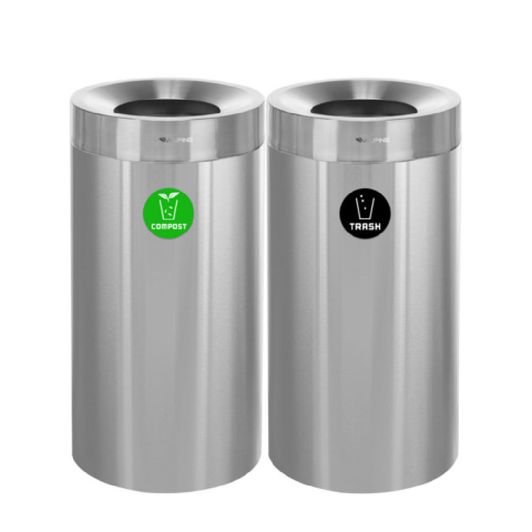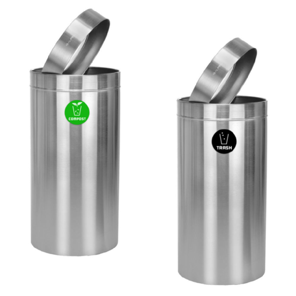 The Alpine Industries ALP475-27-CO-T Compost Bin With Trash Can is a dual-function unit designed for indoor use, accommodating the needs of eco-conscious individuals and businesses alike. With a capacity of 27 gallons for each stream, the unit allows efficient waste separation, supporting sustainable disposal practices. Each unit measures 16 inches in width, 16 inches in depth, and 32 inches in height, making it a compact yet spacious solution for waste management. Crafted from durable stainless steel, this compost bin and trash can combo features an open-top design, providing easy access while discreetly concealing trash bags to maintain a clean appearance. The silver finish adds a sleek, modern touch, suitable for various indoor environments. Its dual-stream functionality caters to different waste types, optimizing waste sorting in settings such as restaurants, offices, and public spaces where effective waste management is crucial. The Alpine Industries ALP475-27-CO-T stands out for its robust construction and practical design, offering a reliable solution for organizations aiming to enhance their sustainability efforts while maintaining a tidy and organized space. This product effectively merges utility with style, meeting the demands of diverse market segments focused on environmental responsibility and indoor waste management efficiency.