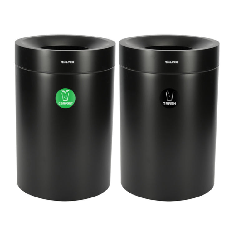 The Alpine Industries ALP475-50-BLK-CO-T Compost Bin And Trash Can stands out with its 50-gallon capacity, providing substantial space for waste management in both residential and commercial settings. Crafted from stainless steel, this dual-purpose unit offers durability and resistance to wear, ensuring longevity even in high-traffic areas. The sleek black finish not only enhances its aesthetic appeal but also seamlessly integrates into various environments, from modern kitchens to professional offices. This compost bin and trash can combination addresses the growing need for sustainable waste solutions by enabling easy separation of compostable materials from general waste. With its ample capacity, it serves diverse market segments, including hospitality, food service, and educational facilities, where efficient waste segregation is crucial. Additionally, the stainless steel construction ensures that the bin maintains its structural integrity over time, making it a reliable choice for those prioritizing both functionality and style in waste management solutions. The Alpine Industries ALP475-50-BLK-CO-T is an exemplary model for those seeking a robust and visually appealing solution for effective and environmentally conscious waste management.