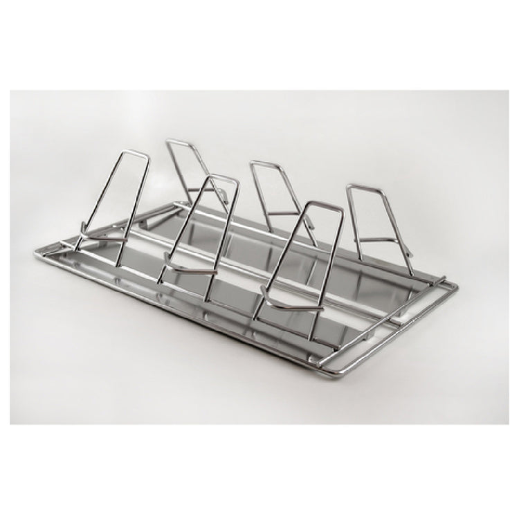 The Alto Shaam 5020829@1020 Chicken Rack is a specialized kitchen accessory designed to enhance the functionality of your cooking appliances. With a capacity to hold up to six chickens, this rack streamlines the cooking process with its self-trussing feature, reducing preparation time and ensuring uniform cooking for each bird. Constructed from durable stainless steel, it promises longevity and robust performance even in high-demand environments. The inclusion of a deflector enhances cooking efficiency, making this product an indispensable tool for commercial kitchens seeking to optimize output. This chicken rack is designed to fit seamlessly into side racks, and can be accommodated within ovens capable of holding six racks, specifically tailored for the 10-20 series ovens. This unique combination of features makes the Alto Shaam 5020829@1020 Chicken Rack a versatile choice for a variety of market segments within the food service industry, including restaurants, catering services, and large-scale culinary operations, offering a reliable solution for high-volume poultry preparation.