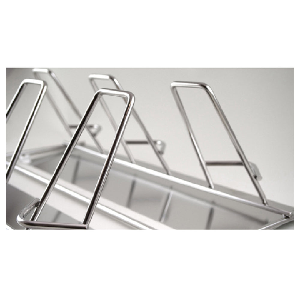 The Alto Shaam 5020829@2010 Chicken Rack - a highly efficient poultry solution designed for professional kitchens - boasts a capacity for six chickens, making it a valuable asset for high-volume cooking operations. This innovative rack features a unique self-trussing capability that simplifies preparation and enhances cooking efficiency. Constructed from durable stainless steel, the rack ensures longevity and reliability, even in the most demanding kitchen environments. Its compatibility with side racks and inclusion of a deflector maximizes heat distribution, ensuring consistent cooking results. Additionally, the oven accommodates up to five racks, optimizing space and efficiency for large-scale cooking needs. The Alto Shaam 5020829@2010 Chicken Rack is specifically designed to fit the 20-10 model, making it a perfect fit for establishments seeking to enhance their cooking capabilities with specialized equipment. Its robust design and practical features make it an ideal choice for restaurants, catering services, and food service operations that require efficient and reliable poultry cooking solutions.