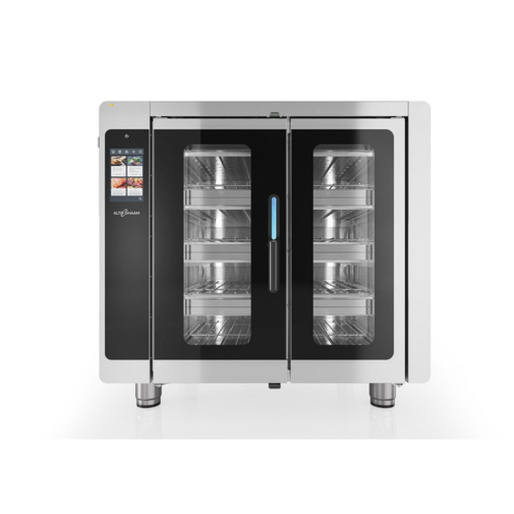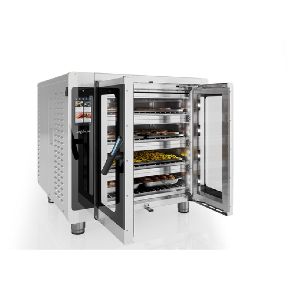 The Alto Shaam VMC-F4E Vector® F Series Multi-Cook Oven Electric is a cutting-edge kitchen appliance featuring four individually controlled cooking chambers, each capable of accommodating two half-size sheet pans or one full-size sheet pan, highlighting its versatility for commercial kitchens. With programmable touch screen controls, operators can easily manage each chamber's settings, enhanced by the innovative Structured Air Technology® that ensures precise air flow and consistent results. The double pane glass door offers visibility and insulation, while the interior LED cavity lighting illuminates each chamber for easy monitoring. Each chamber includes one wire rack and two jet plates, optimizing cooking efficiency. The oven's durable stainless steel construction is complemented by 4-inch adjustable legs for stability and adaptability to various kitchen environments. Equipped with a USB port, the VMC-F4E facilitates easy software updates and data management. Certified by cULus and UL EPH, this oven meets rigorous safety and sanitation standards, making it an indispensable asset for food service operations looking to enhance their cooking capabilities with advanced technology and design. Whether catering to cafes, restaurants, or industrial kitchens, this multi-cook oven stands out for its technological sophistication and operational flexibility.