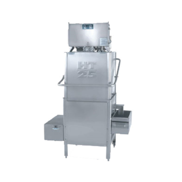 The American Dish Service HT-25-J12-S Pass Through Dishmachine Door Type High Temperature Sanitizing is engineered for efficient and thorough dishwashing, catering to the needs of commercial kitchens. This robust dishmachine is designed to process up to 57 racks per hour, making it suitable for high-demand environments. It features a powerful 3 HP wash pump and operates with a water consumption of just 0.89 gallons per rack, ensuring both performance and efficiency. The machine supports both corner or straight configurations, adding versatility to its placement options within various kitchen layouts. Equipped with an auto-start function, it streamlines operations by initiating the wash cycle automatically. The air-gap fill technology is complemented by a built-in Hubbell J-12/12kW booster, delivering a 70°F rise in temperature for effective high-temperature sanitizing. Additional features include auto-fill capability, a drain pump filter, and top-mounted controls for ease of use. Constructed with a stainless steel motor panel and overall stainless steel build, the dishmachine ensures durability and longevity. It operates on an electric tank heat system with a 208v/240v, 3-phase, 50 amp electrical requirement, catering to the rigorous demands of professional food service establishments.