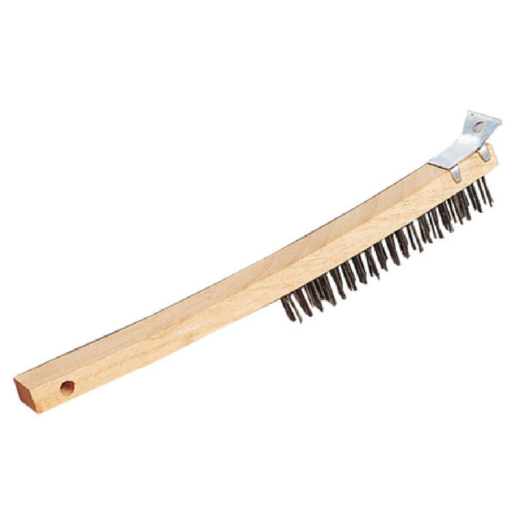 The American Metalcraft 1347 Brush/Scraper Wire Tempered Steel Tufts is a versatile tool designed for durability and efficiency across various industries. This product features wire tempered steel tufts, measuring 3/4" x 5-7/8", that ensure robust cleaning and scraping performance, making it suitable for tasks demanding rigorous surface preparation or maintenance. The wooden handle, contributing to an overall length of 13-1/2", provides a comfortable grip, enhancing user control and reducing fatigue during prolonged use. Hand wash only, this brush/scraper balances functionality with ease of care, making it ideal for professionals who prioritize tool longevity. Its specialized design caters to sectors such as culinary services, manufacturing, and maintenance, offering a reliable solution for intricate cleaning tasks and surface treatments. The American Metalcraft 1347 Brush/Scraper combines precision engineering with practical design, catering to the needs of professionals who require a dependable tool for maintaining cleanliness and efficiency in their operations.