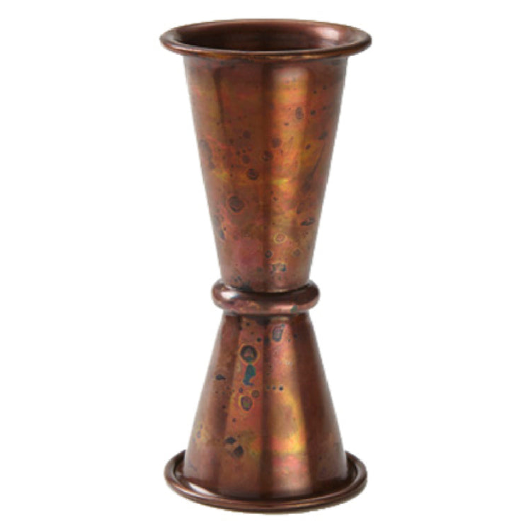 The American Metalcraft ACJ Jigger 1 oz. x 2 oz., 2" dia. x 4-1/4"H is a dual-capacity measuring tool meticulously designed for precision in the art of mixology. Featuring a 1-ounce and a 2-ounce measurement on either side, this jigger is an essential instrument for bartenders who require accuracy and efficiency in cocktail preparation. Its design showcases a mottled antique copper exterior that not only adds a touch of elegance to any bar setup but also distinguishes it from standard jiggers. The stainless steel interior ensures durability and resistance to rust, promising longevity and consistent performance over time. However, to maintain its pristine condition, it is recommended to hand wash this jigger only. With dimensions measuring 2 inches in diameter and standing 4-1/4 inches tall, it is compact and easy to handle, providing a comfortable grip for quick pouring. The American Metalcraft ACJ Jigger is a valuable asset for both professional bars and home enthusiasts, catering to a wide array of market segments within the hospitality industry. Its blend of aesthetic appeal and practical functionality makes it a standout choice for those who value quality craftsmanship in their beverage tools.
