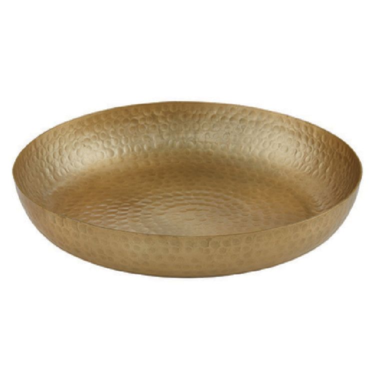 The American Metalcraft ASEAG14 Seafood Tray is a distinguished serving piece with a substantial capacity of 128 oz., perfectly engineered for presenting and serving an array of seafood dishes. With dimensions of 14 inches in diameter and 2-1/2 inches in height, this round tray offers ample space, making it ideal for both small and large gatherings. Crafted from hammered aluminum, the tray boasts a sophisticated gold finish, adding a touch of elegance to any dining setting. The textured design not only enhances its aesthetic appeal but also ensures durability and longevity, making it a staple for hotels, restaurants, and catering services. Emphasizing convenience and practicality, the ASEAG14 is designed for hand-wash only, ensuring that its refined appearance is maintained over time. Its versatile design and size make it a valuable addition to any commercial kitchen or upscale dining establishment, catering to the needs of different markets within the hospitality industry. The tray's quality construction and stylish look make it an excellent choice for showcasing seafood in a manner that is both sophisticated and functional, offering a unique value proposition for those seeking to enhance their presentation and service quality in the culinary field.