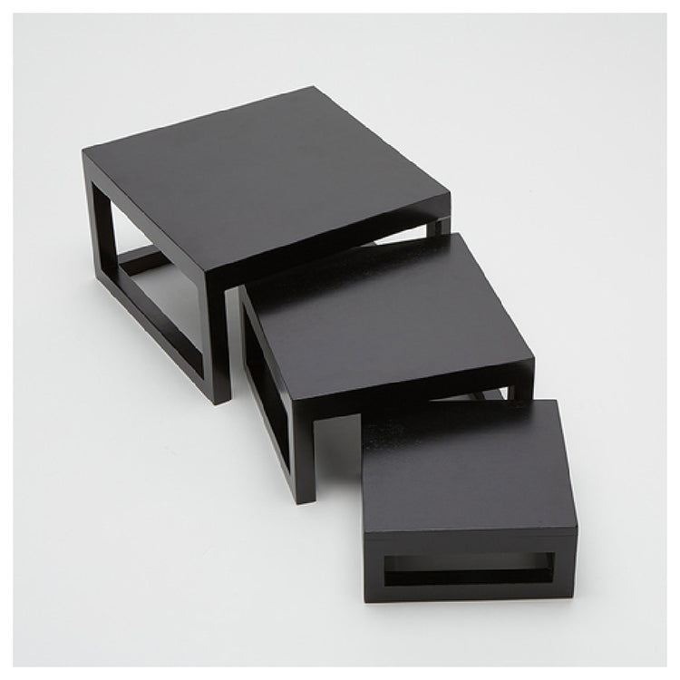 The American Metalcraft AWRSP Riser Set is a sophisticated 3-piece display solution, perfect for enhancing the presentation of culinary creations across various service environments. Each riser is meticulously crafted from premium wood and finished in a sleek black, providing an elegant aesthetic that complements diverse decor styles. The set includes three square risers of varying dimensions: one 10-1/4 inch square with a height of 6 inches, one 8-1/2 inch square standing at 4-1/2 inches high, and one 6-3/4 inch square with a 3-inch height. This variety in size makes the AWRSP Riser Set adaptable and versatile for different display needs, whether elevating platters in buffets, showcasing products in retail environments, or enhancing table settings in restaurants. The distinct sizes of each riser enable creative stacking and arrangement possibilities, maximizing visibility and accessibility for a dynamic presentation. This riser set is ideal for catering professionals, event planners, and restaurateurs seeking to add an element of sophistication to their displays. The American Metalcraft AWRSP Riser Set stands out for its functional design and aesthetic appeal, making it a valuable addition to any professional setting where presentation matters.