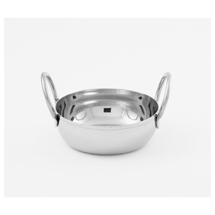 The American Metalcraft BD45 Balti Dish is a meticulously crafted piece designed for both professional chefs and home cooking enthusiasts. With a capacity of 16 oz., this dish is perfectly suited for serving individual portions, making it an essential tool in any kitchen. Its dimensions of 5-1/8 inches in diameter and 2-1/2 inches in height provide ample space for various culinary creations, while the overall width of 6-1/2 inches with handles ensures easy handling and presentation. Constructed from high-quality stainless steel, the BD45 features a mirror finish that not only enhances its aesthetic appeal but also provides a durable surface resistant to rust and corrosion. This round Balti dish is particularly valuable in Indian cuisine, where it can be used to cook and serve traditional dishes directly from the stove to the table, preserving flavors and heat. The stainless steel composition ensures even heat distribution, while its stylish design makes it suitable for both casual and formal dining environments. This American Metalcraft creation is a versatile addition to any kitchen, offering a blend of functionality, durability, and elegance, making it a top choice for restaurants, catering services, and home dining alike.