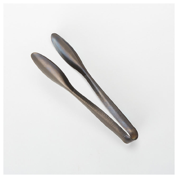 The American Metalcraft BLHT2 Serving Tongs - 11-3/4"L Hammered is a versatile tool crafted from 18/0 stainless steel, known for its durability and corrosion resistance, which is ideal for both commercial and home dining settings. With a vintage black finish, these serving tongs provide an elegant touch to any buffet or catering presentation, seamlessly blending functionality with aesthetic appeal. The hammered texture not only enhances the grip for secure handling but also adds a sophisticated, artisanal look that complements various table settings. Measuring 11-3/4 inches in length, these tongs are perfectly sized to handle a variety of foods, from delicate pastries to robust cuts of meat, making them indispensable for restaurants, hotels, and catering services. The stainless steel construction ensures long-lasting performance, while the vintage black finish offers a unique visual appeal that distinguishes these tongs in the market. Ideal for professional chefs and food service operators seeking reliable serving tools that do not compromise on style, the American Metalcraft BLHT2 Serving Tongs are a practical addition to any dining experience, marrying functional design with an eye-catching aesthetic to elevate presentation and service.
