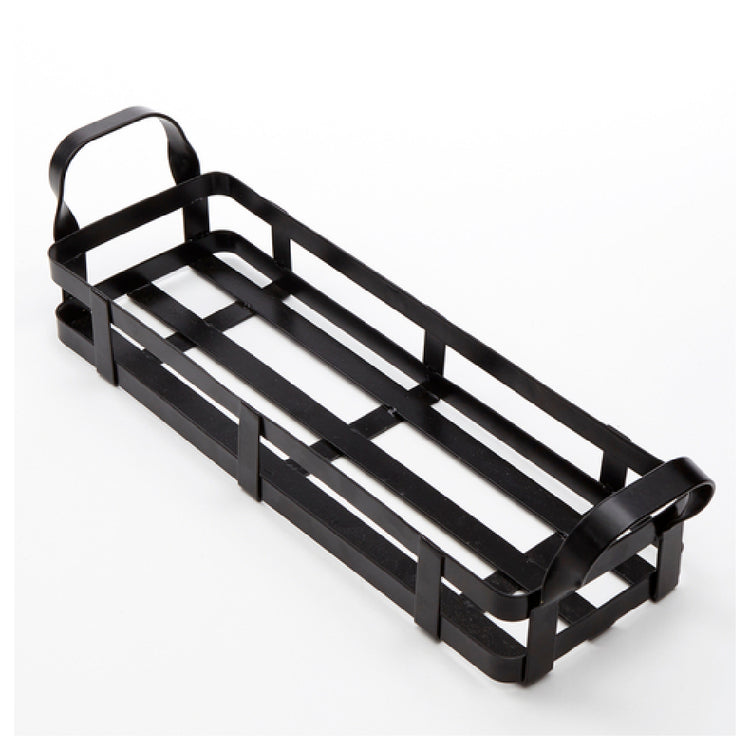 The American Metalcraft BWC12 Condiment Rack is a versatile and practical addition to any dining establishment, designed with precision and functionality in mind. This rectangular rack measures 12-3/4 inches in length, 4-3/8 inches in width, and 3-1/2 inches in height, providing ample space for organizing a variety of condiments. Constructed with attention to detail, the rack features convenient handles, ensuring ease of transport and accessibility in fast-paced dining environments. The sleek black finish adds a touch of sophistication to tabletops, seamlessly blending with diverse interior decors. This condiment rack is particularly well-suited for establishments prioritizing a neat and organized presentation of condiments, such as upscale restaurants, casual cafes, or bustling buffets. The BWC12 is specifically designed for hand washing, maintaining its pristine condition over time with minimal effort. Its robust construction ensures durability while its compact size makes it suitable for use in settings where space efficiency is a priority. The American Metalcraft BWC12 Condiment Rack stands out as an essential tool for enhancing the dining experience, offering both practicality and style to meet the varied needs of the food service industry.