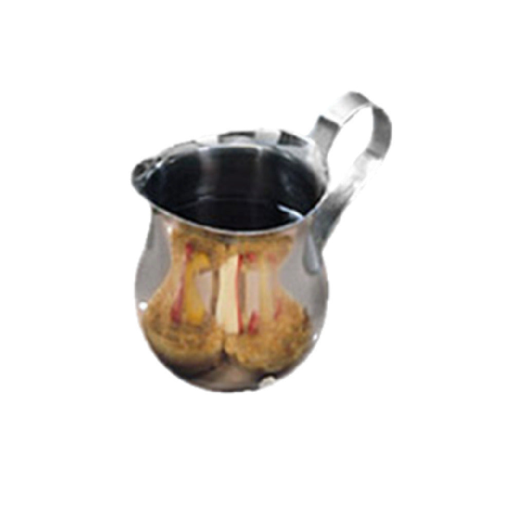 The American Metalcraft CP300 Creamer 3 Oz. is a compact yet stylish addition to any dining setting, particularly beneficial for cafes, restaurants, and hospitality venues seeking to elevate their presentation. This bell-shaped creamer is crafted with precision from high-quality stainless steel, boasting a sleek mirror finish that not only enhances its aesthetic appeal but also ensures durability and longevity. Measuring 2-1/8 inches in diameter, 3-3/4 inches in width, and standing at a height of 2-3/8 inches, this creamer is designed to hold a capacity of 3 ounces, making it ideal for serving individual portions of cream or milk alongside coffee or tea. The flat loop handle offers a comfortable grip, while the contoured lip ensures a smooth and precise pour, minimizing spills and maintaining a clean service area. This creamer's open-top design allows for easy refilling and cleaning, making it a practical choice for high-turnover environments. Whether used in upscale dining establishments or casual coffee shops, the American Metalcraft CP300 Creamer combines functionality with elegance, providing a reliable solution for enhancing the customer experience in various market segments within the foodservice industry.