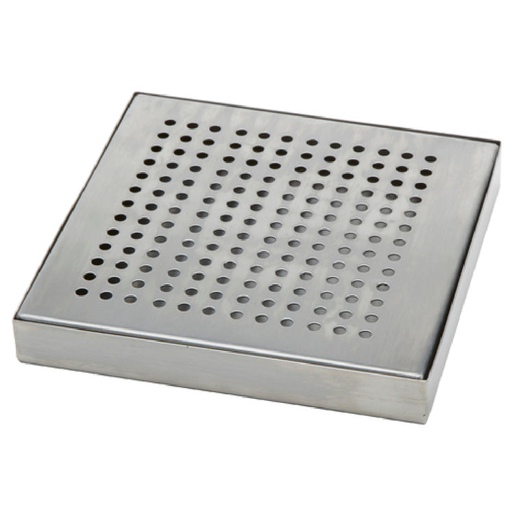 The American Metalcraft DT4 Drip Tray is a meticulously designed piece, measuring 6 inches in length, 6 inches in width, and 3/4 inches in height, providing a compact yet efficient solution for various industrial applications. Constructed from high-quality stainless steel, this square drip tray is engineered to deliver durability and longevity, making it an indispensable component in environments where liquid containment and spill prevention are critical. Its robust build ensures resistance to corrosion and wear, maintaining its aesthetic appeal and functionality over time. The tray's dimensions are optimized for use in limited spaces while still offering adequate coverage to capture drips and spills, making it an ideal choice for both small-scale and large-scale operations. The American Metalcraft DT4 Drip Tray is particularly valuable in food service industries, laboratories, and industrial kitchens, where maintaining cleanliness and safety is paramount. Its sleek design and practical size make it versatile enough to fit seamlessly into any setting, providing a reliable solution for businesses that prioritize efficiency and hygiene. The DT4 Drip Tray exemplifies a dedication to quality and practicality, offering a blend of aesthetic appeal and functional excellence.