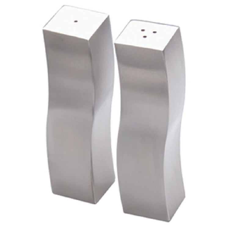 The American Metalcraft DXP4 Salt & Pepper Shaker Set is a meticulously designed product tailored for diverse culinary environments, offering both functionality and style. With a capacity of 2 oz., each shaker measures a compact 1" square by 4" in height, making it an ideal fit for both intimate and commercial dining settings. Crafted from high-quality stainless steel, these shakers boast a wavy design that adds a modern aesthetic to any tabletop. The durable construction ensures long-lasting use, making it suitable for high-traffic restaurants or cozy home kitchens. The stainless steel material not only provides a sleek look but also ensures resistance to corrosion and staining, contributing to easy maintenance. The American Metalcraft DXP4 set is a versatile choice for professionals in the food service industry and home cooks alike, offering a reliable and stylish solution for seasoning needs. Its compact size and elegant design make it a practical addition to any dining environment, from upscale bistros to casual cafes, seamlessly blending with various table settings and décor themes. This shaker set exemplifies American Metalcraft's commitment to quality and innovation, serving as a valuable accessory for enhancing dining experiences.