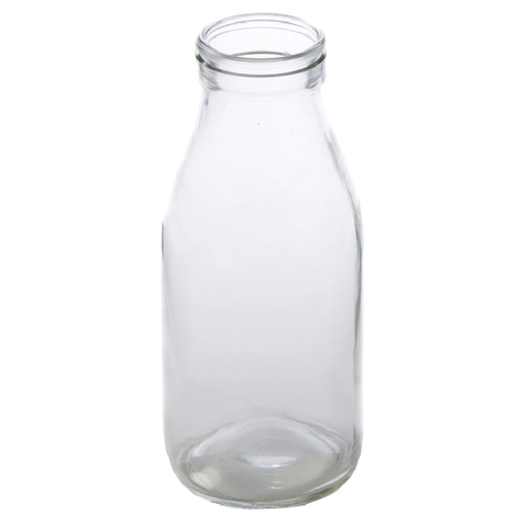 The American Metalcraft GMB32 Milk Bottle 32 Oz. is a sleek and functional addition to any food service establishment, offering a unique combination of style and practicality. With a capacity of 32 ounces, it is ideal for serving or storing milk, juice, or other beverages, catering to various segment markets such as cafes, restaurants, or catering services. The bottle features a 3-1/4-inch bottom diameter and stands 8-1/4 inches tall, making it a compact yet substantial option for beverage service. Crafted from clear glass, it provides a visually appealing way to present beverages while allowing for easy content visibility. The classic design of the American Metalcraft GMB32 Milk Bottle nods to traditional milk bottles, providing a touch of nostalgia and charm, which can enhance the dining experience in settings that value aesthetic appeal. This clear glass construction not only adds to its visual appeal but also makes it functional and versatile for a range of uses. The American Metalcraft GMB32 Milk Bottle is designed for those who appreciate both form and function, making it a practical choice for industries seeking to combine elegance with practicality in their beverage service solutions.