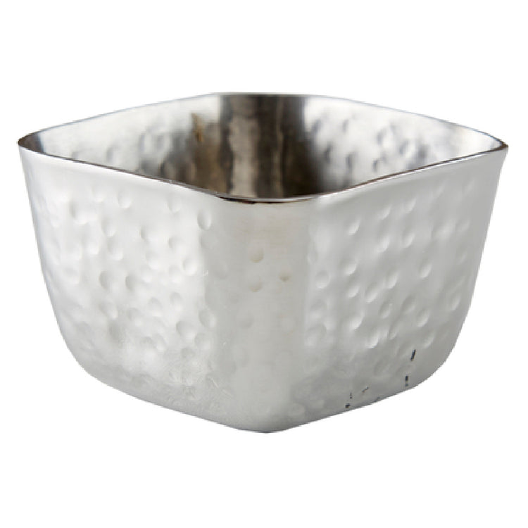 The American Metalcraft HAMSC25 Sauce Cup 2.5 Oz. 2-1/4" Sq. X 1-1/4"H is a meticulously crafted serving accessory that stands out for its distinctive design and premium material. With a volume of 2.5 ounces, this sauce cup is perfect for presenting small portions of condiments, dressings, or sauces. Its square dimensions of 2-1/4 inches per side and a height of 1-1/4 inches make it a compact yet stylish addition to any dining setup. The cup's unique hammered texture not only adds an aesthetic appeal but also provides a tactile experience that enhances the overall dining atmosphere. Crafted from stainless steel, it promises durability and resistance to corrosion, maintaining its sleek appearance even with frequent use. This sauce cup is versatile, making it ideal for restaurants, hotels, and catering services that value both functionality and design in their tableware. Its robust construction ensures longevity, while the elegant hammered finish complements various dining themes, from rustic to modern. The American Metalcraft HAMSC25 Sauce Cup is an exemplary choice for establishments looking to elevate their presentation of dips and sauces, all while ensuring a practical and enduring service implement for their culinary needs.