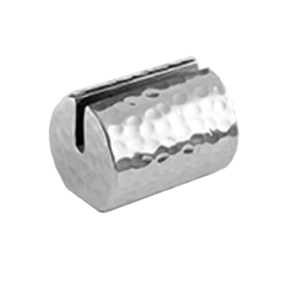 The American Metalcraft HCHL1 Card Holder is a meticulously designed piece measuring 1-1/4 inches in length, 7/8 inches in width, and 7/8 inches in height, perfectly crafted to serve various segments within the industry. This cylindrical card holder is made from high-quality aluminum and features a distinctive hammered finish, adding a touch of elegance to any setting. Its compact size and durable construction make it an ideal choice for a multitude of uses, such as restaurants, hotels, and event spaces, where displaying cards or signs with sophistication is essential. The hand wash only requirement ensures the preservation of its unique finish and longevity, making it a reliable and stylish option for professionals who value both form and function. This product's versatility and aesthetic appeal cater to diverse market demands, whether used for table settings, receptions, or business meetings, enhancing the visual presentation while effectively communicating necessary information to patrons or clients.