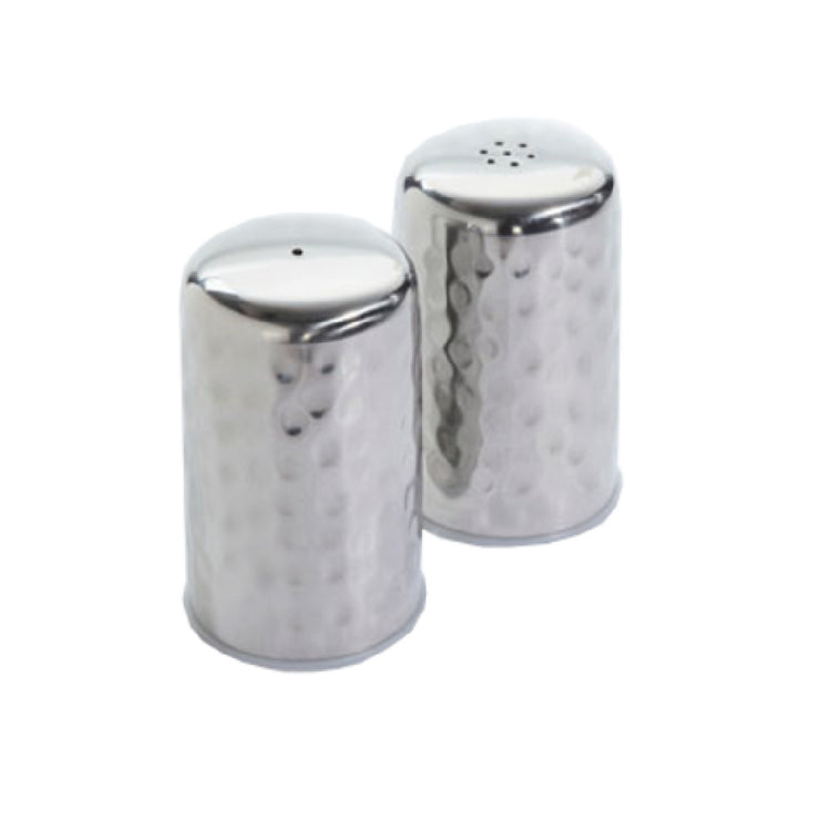 The American Metalcraft HMSP2 Salt & Pepper Shaker Set - 2 Oz. 1-3/4" Dia. X 2-3/4"H is a distinctive addition to any dining experience, combining practicality with an elegant design. This set features a compact and round structure, with each shaker measuring 1-3/4 inches in diameter and 2-3/4 inches in height, making it an ideal choice for both commercial and home use where space and style are equally important. Crafted from stainless steel, these shakers boast a hammered finish that adds a touch of sophistication while ensuring durability and resistance to rust or corrosion. Each shaker holds 2 ounces of seasoning, providing ample capacity for frequent use without the need for constant refilling. The inclusion of a plastic stopper further enhances usability, allowing for easy refills and maintenance. The American Metalcraft HMSP2 set is perfectly suited for upscale restaurants, catering services, or home kitchens seeking a stylish yet functional seasoning solution. Its unique combination of size, material quality, and design aesthetics positions it as a versatile product within the market, catering to diverse needs across various segments of the foodservice industry.